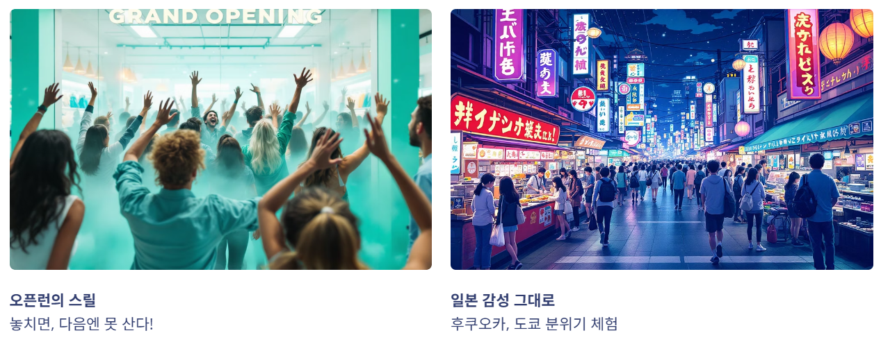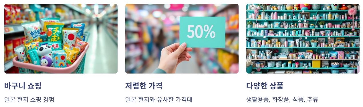 - 장점: 일본 여행의 감성과 쇼핑을 서울에서 즐길 수 있음