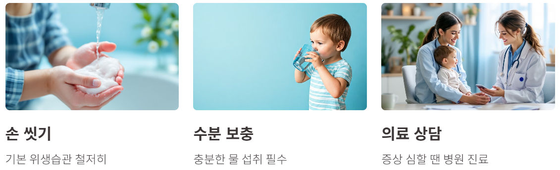 📌 증상 소멸 후 48시간은 전염력이 남아 있으니 완전 회복 전까지는 등원·등교를 피하세요!