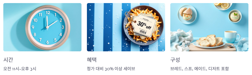 - 런치세트 시간대 맞춰 예약하면 기본 30% 이상 절약