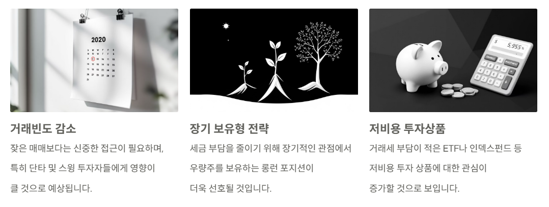- 거래세 인상 시 단기 매매 수익률 악화와 거래량 감소 우려가 표출되고 있습니다.