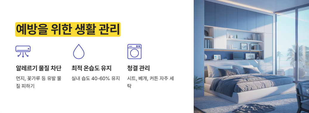 - 먼지, 꽃가루 등 알레르기 유발 물질 피하기